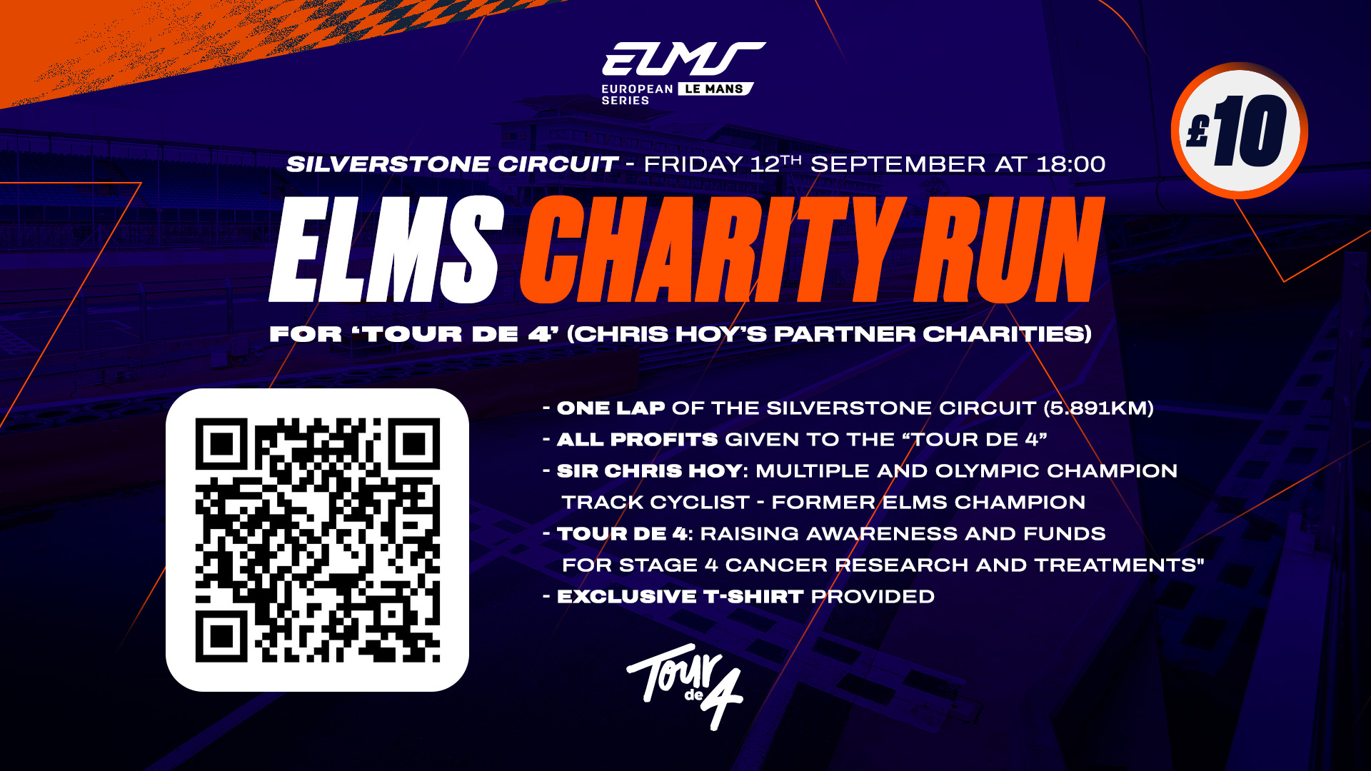 On Friday 12th September from 18:00 during the 4 Hours of Silverstone 2025, the European Le Mans Series is hosting a special charity run around the 5,891 km iconic Silverstone circuit! Drivers, team members and officials will be taking part, and you, the fans, can be part of this special event too!