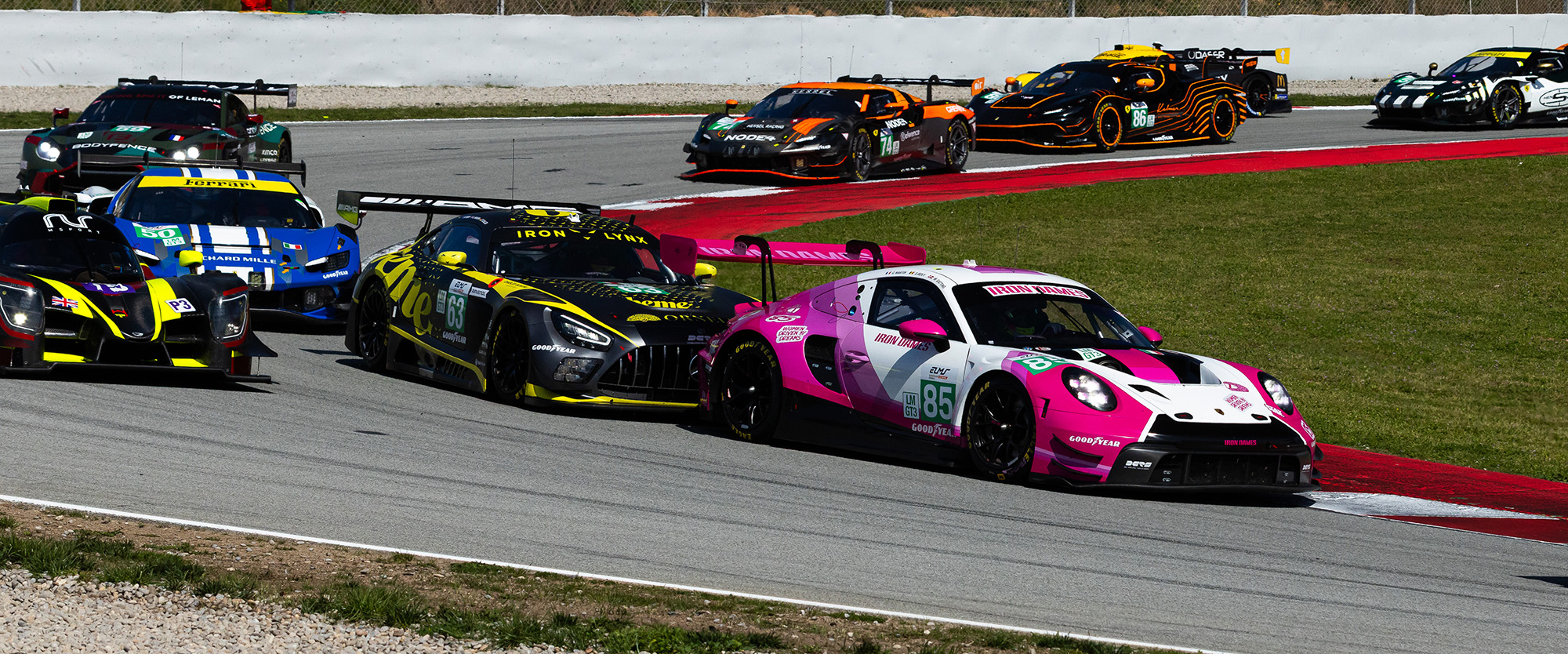 The no85 Iron Dames Porsche of Celia Martin got a good start to take the lead of the LMGT3 category with the pole sitting no63 Iron Lynx Mercedes-AMG of Martin Berry in second and keeping in touch with the Porsche. Martin kept her cool and her lead pulling out a small gap in the first hour of the race.