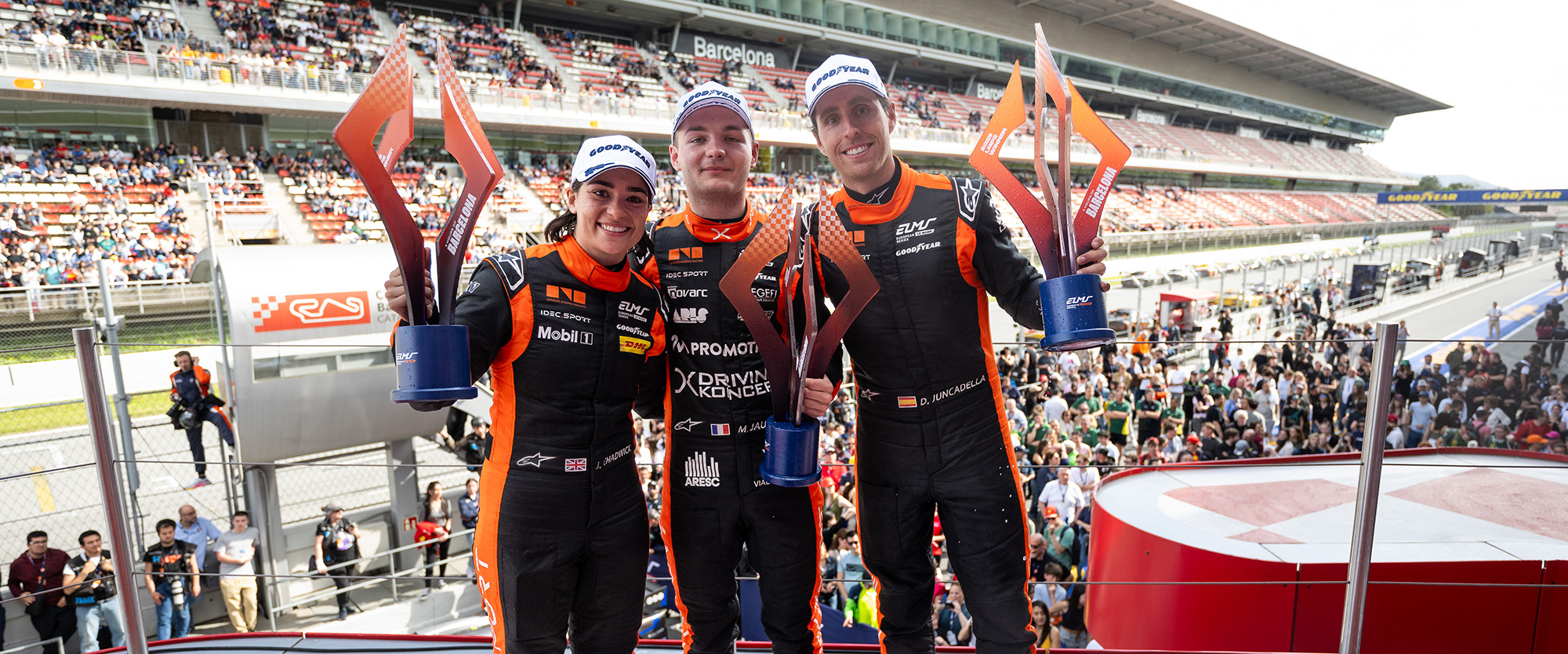 Jamie Chadwick became the first female driver to stand on the top step of the ELMS LMP2 podium, joining IDEC Sport teammates Daniel Juncadella and Mathys Jaubert, winning the LMP2 category on their ELMS debut ahead of the no48 VDS Panis Racing Oreca.